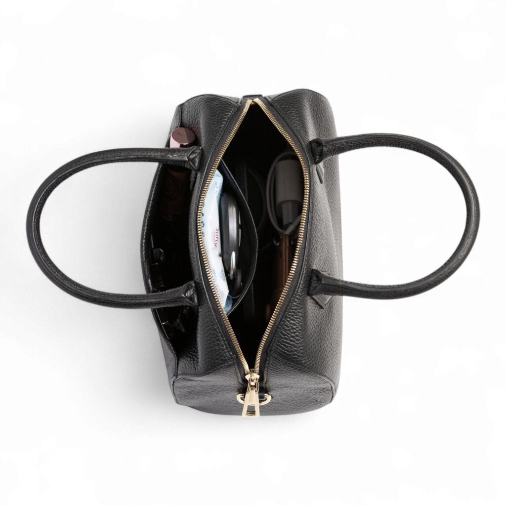 Fits everyday essentials: make-up, charger, phone, wallet, sunglasses, perfume and more…
